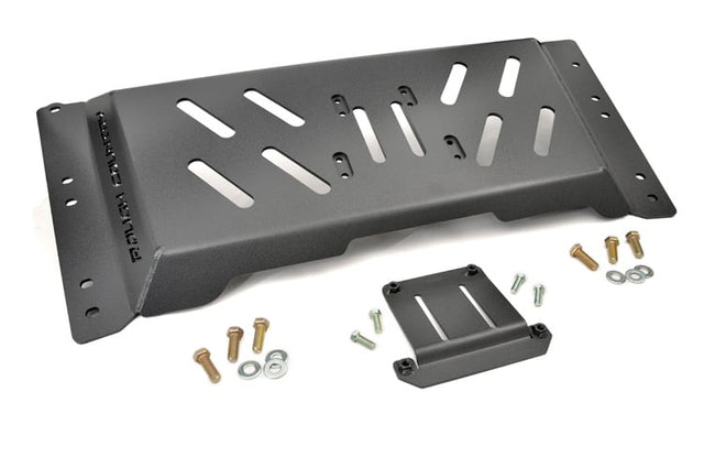 Put the shovel to rest with Rough Country's new High Clearance Skid Plate. Made from heavy-duty quarter inch steel, this super tough belly pan protects the underside of your vehicle from off-road hazards. With its innovative design the skid plate sits snug to the vehicle, avoiding hang-ups your factory plate can't and allowing an additional 2in of clearance. The pronounced lip traverses rocks and dirt with ease. A powdercoat helps ward off the elements as well as it gives the vehicle a killer look.