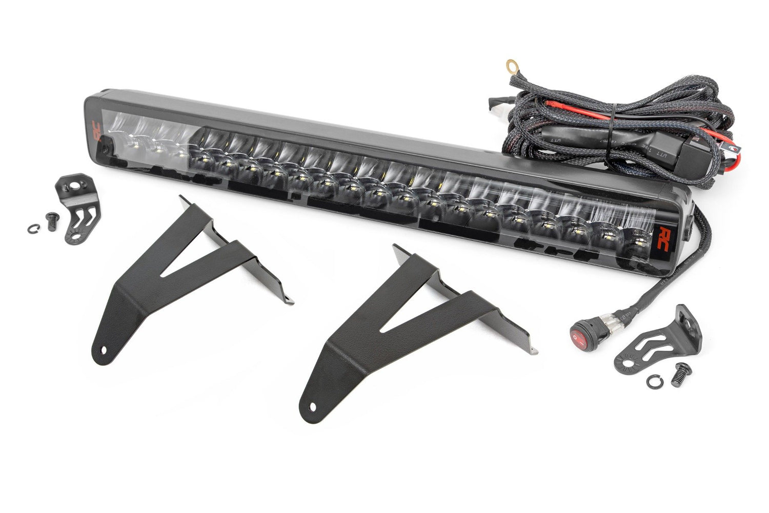 COMMAND THE DARK: Add LED illumination to the front of your 2019 RAM 1500 with Rough CountryΓÇÖs 20in Hidden Bumper LED. This sleek, discreet lighting system blends in seamlessly with the front-end design, hidden behind the mesh grille on the factory front bumper.This powerful LED application provides 120 watts of forward-facing illumination in a convenient 8 degree spot / 90 degree flood combo pattern for maximum viewability. Each Rough Country LED light features an IP67 waterproof rated durable diecast aluminum housing for a long lifespan or great performance. Each light features a premium wiring harness with in-line fuse for easy operation.Choose from Rough CountryΓÇÖs Black Series and DRL Series Light Bars. \