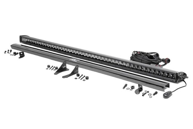 COMMAND THE DARK with Rough CountryΓÇÖs 50in LED Hood Kit! This awesome, easy-to-install LED upgrade gives your Jeep JL a menacing look and incredible off-road illumination.This kit features Rough CountryΓÇÖs 50in, straight, single-row LED light bar for a sleek look that leaves plenty of visibility while blending in perfectly with the JLΓÇÖs aggressive front-end design. This setup provides a staggering 19,200 lumens and 240 watts of forward-facing LED power and is available in your choice of Chrome-Series or Black-Series LED for the style that suits your build the best! Each Rough Country LED light bar is IP67 Waterproof and includes a premium, braided wiring harness with in-line fuse and on/off switch!This easy-to-install kit features a 100% bolt-on installation procedure, with no need for cutting or drilling on your brand new Jeep, and does not interfere with the windshield washer nozzle or spray pattern! Includes Rough CountryΓÇÖs 3-year LED warranty and lifetime mounting bracket warranty!