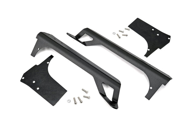 With durable steel construction and aggressive good looks, Rough Country's 50-inch LED Upper Windshield Light Bar Bracket is the ultimate solution for adding our premiere lighting system to your Jeep TJ. With its modern, stylistic design and superior strength, this upper windshield mount holds your 50-inch Light Bar between the top of your Wrangler's windshield and roof, spanning the entire width of the roof and giving a killer look. Fits any standard 50-inch Off-Road LED Light.