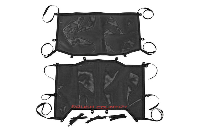 Get protection from the sun while still enjoying the breeze with Rough CountryΓÇÖs Mesh Bikini Tops! These high-quality mesh tops block 70% of the sunΓÇÖs harmful UV rays, giving you much needed shade and protection while still providing the classic Jeep top-down experience that so many owners enjoy!These easy-to-install Mesh Tops require no tools to install, and can attach quickly and easily to your jeepΓÇÖs roll bars. Featuring a durable commercial-grade mesh fabric and heavy-duty webbing, these mesh Bimini tops are built to last for a long lifespan of good looks and protection.