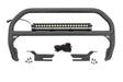 Rough Country's Nudge Bar can be equipped with four round LED lights, or a single row 20" LED light bar! Rough CountryΓÇÖs all-weather LED lights feature a durable, die-cast aluminum housing and include a premium, waterproof, flat-wound, braided wiring harness with toggle switch and in-line fuse.