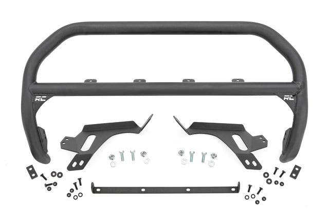 Tough Protection, Bold Style: Outfit your Ford Bronco Sport with Rough Country's Nudge Bar for the ultimate blend of strength and style. Crafted from durable 2-inch tubular steel, this bull bar adds a rugged layer of front-end protection while giving your SUV a commanding look on or off the trail. Installation Notice: This Nudge Bar requires cutting and drilling for proper installation. With careful attention and standard tools, you can achieve a secure, custom fit that enhances both protection and appearance. Built to Last: Finished in a corrosion-resistant black powder coat, this Nudge Bar is engineered to withstand the elements and maintain its sleek appearance for years of use. Lighting Ready: Take on the night with multiple lighting options to suit your needs. Choose from a 20" Black Series LED Light Bar (7200 lumens), a 20" Spectrum Series Light Bar (24,300 lumens), or four 4" round LED lights (8640 lumens). Each lighting setup includes a durable, die-cast aluminum housing and a waterproof, braided wiring harness for reliable all-weather performance. Reliable Coverage: The Nudge Bar is backed by Rough Country's 5-year limited warranty, and all lighting options include a 3-year limited warranty for added peace of mind.