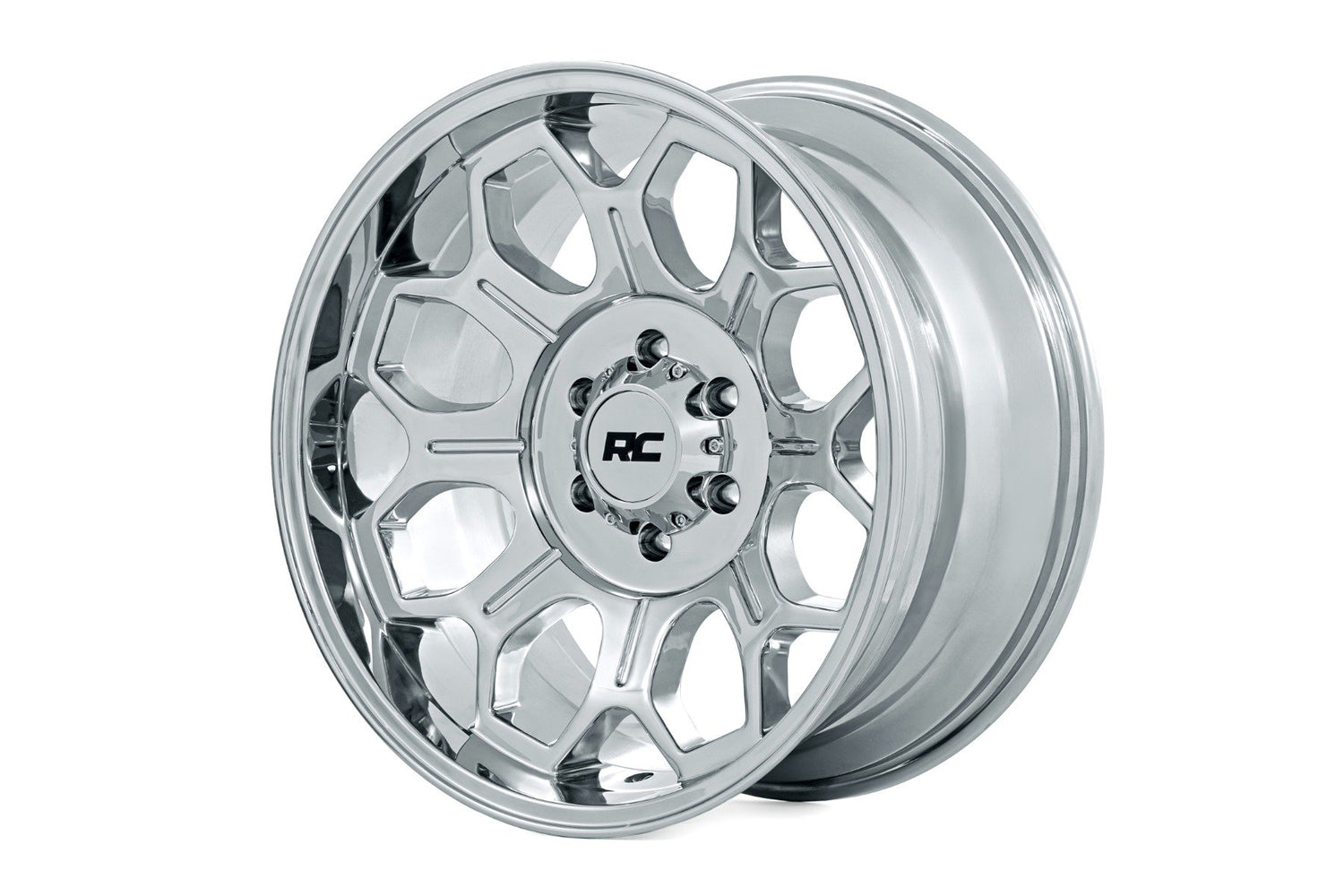 Elevate your ride with Rough Country's 77 Series Wheel, designed for those who demand both style and performance. Whether you're conquering the streets or tackling tough off-road trails, these wheels are built to handle it all.Chrome Finish: This sleek and reflective finish resists the elements, maintaining its brilliant shine through all conditions.Aggressive 8-Spoke Design: Engineered for strength and style, this design offers a fierce, rugged look while enhancing your vehicle's performance on and off the road.Lightweight Single-Piece Aluminum Construction: Enjoy the benefits of a strong, lightweight wheel that improves handling without compromising durability.Includes Chrome Center Cap with Black Lettering: Complete the look with a sleek chrome center cap featuring bold black lettering for a striking contrast.1-Year Finish & Limited Lifetime Structural Warranty: Built to last with confidence, this wheel comes with a 1-year finish warranty and a limited lifetime structural warranty.Upgrade your vehicle with Rough Country's 77 Series Wheel for a perfect blend of toughness, style, and reliability.