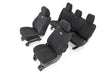 Want to protect your seats or are your seats showing signs of wear and tear from daily use? Say goodbye to unsightly stains and deterioration with Rough Country's Neoprene Seat Covers - the ultimate solution for preserving your vehicle's interior.Snug Fit for Optimal Protection: Our seat covers are tailored to fit your seats perfectly, providing a protective barrier against spills, scratches, and everyday wear and tear.Factory-Spec Construction: Engineered to meet factory specifications, our covers blend seamlessly with your vehicle's interior, giving it a fresh, new look without compromising on quality or style.Four-Layer Defense: With a four-layer construction featuring foam padding and a durable polyester shell, our seat covers offer unmatched protection and longevity, ensuring your seats stay looking new for years to come.Breathable and Water-Resistant: The neoprene layer not only provides breathability for added comfort but also boasts water-resistant properties, safeguarding your seats from spills and stains.Complete Coverage: Our covers come with full protection for your front seats, including headrest covers where applicable, as well as rear covers to shield your back seats from children and pet-related mishaps.Peace of Mind Warranty: Rest easy knowing your purchase is backed by our two-year warranty, giving you confidence in the durability and reliability of our product.Don't let worn-out seats diminish your driving experience. Upgrade to Neoprene Seat Covers today and enjoy a fresh, stylish interior that's protected against the rigors of daily life on the road.
