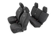 Want to protect your seats or are your seats showing signs of wear and tear from daily use? Say goodbye to unsightly stains and deterioration with Rough Country's Neoprene Seat Covers - the ultimate solution for preserving your vehicle's interior.Snug Fit for Optimal Protection: Our seat covers are tailored to fit your seats perfectly, providing a protective barrier against spills, scratches, and everyday wear and tear.Factory-Spec Construction: Engineered to meet factory specifications, our covers blend seamlessly with your vehicle's interior, giving it a fresh, new look without compromising on quality or style.Four-Layer Defense: With a four-layer construction featuring foam padding and a durable polyester shell, our seat covers offer unmatched protection and longevity, ensuring your seats stay looking new for years to come.Breathable and Water-Resistant: The neoprene layer not only provides breathability for added comfort but also boasts water-resistant properties, safeguarding your seats from spills and stains.Complete Coverage: Our covers come with full protection for your front seats, including headrest covers where applicable, as well as rear covers to shield your back seats from children and pet-related mishaps.Peace of Mind Warranty: Rest easy knowing your purchase is backed by our two-year warranty, giving you confidence in the durability and reliability of our product.Don't let worn-out seats diminish your driving experience. Upgrade to Neoprene Seat Covers today and enjoy a fresh, stylish interior that's protected against the rigors of daily life on the road.