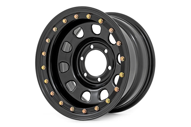 Stand-out Look. Rough Country's Black Simulated Beadlock Steel Wheels are built for maximum durability and strength with high-performance styling that ensures that it's ready to withstand anything on and off-road. This steel wheel replacement will provide you with a rugged appearance and outstanding performance that you expect from Rough Country products. Rough Country's black Steel wheels are the perfect setup for running a 12.50” wide tire with appropriate lift. \