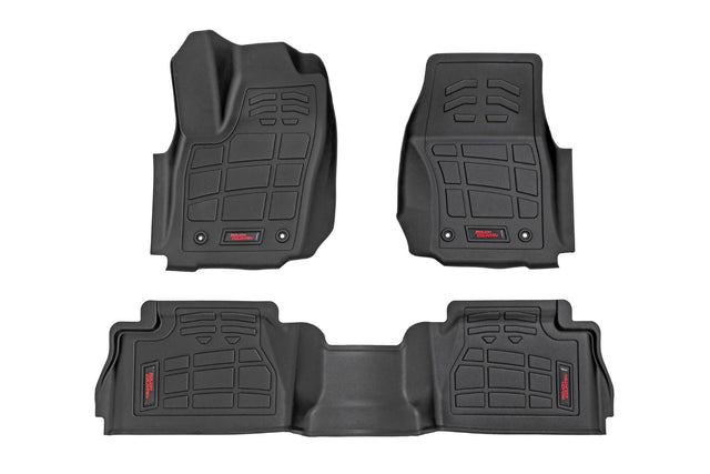 Keeping your ride spotless isn't always easy, especially with the unpredictable weather and accidental spills. Now you can ditch the dirt and keep your ride clean with Rough CountryΓÇÖs Sure-Fit Floor Mats! All-Weather Protection: Our Sure-Fit Floor Mats are built to conquer any mess, from snow and mud to sand, salt water, and even that mystery puddle you're too afraid to touch. Spilled coffee? Don't sweat it! These mats feature a raised lip design that traps spills before they can reach your carpet. Plus, the textured surface keeps your feet firmly planted (no matter how messy things get).Sure-Fit Design: Made from tough Thermoplastic Rubber, these mats can handle anything you throw at them. They're flexible enough to contour perfectly to your Tacoma's floor, but strong enough to withstand even the most extreme temperatures. And the best part? They're custom-designed for your ride, so you get a perfect fit with extra coverage, whether you're rocking bucket or bench seats.Installation is a Breeze: Simply swap out your old mats and put ours in place. And they're just as easy to remove for cleaning, whether you're hitting them with the hose or giving them a quick vacuum. Made with pride in the USA using high-quality materials, they're built to withstand the test of time. And to show we stand behind our product, we offer a Limited Lifetime Warranty, so you can drive with confidence knowing your investment is protected.With Rough CountryΓÇÖs Sure Fit Floor Mats you get the perfect combination of style, durability, and peace of mind, knowing your vehicle's floors are protected no matter where the road takes you. Life is messy, but your truck doesn't have to be.