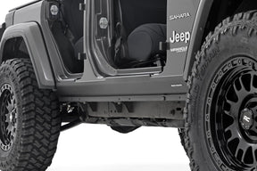 The rocker area of your Jeep JL takes a beating. Between trail rocks, road grime, and everyday wear, scratches and dents are bound to happen. But it doesnΓÇÖt have to look that way. Rough CountryΓÇÖs JL 4-Door Sill Plates guard your JeepΓÇÖs most vulnerable spots and clean up the look by hiding those rusty pinch welds. TheyΓÇÖre rugged, stylish, and easy to install. Whether youΓÇÖre hitting the trails or cruising around town, theyΓÇÖll keep your Jeep looking sharp.Protect What Matters: Shields your rocker area from scratches, chips, and dentsΓÇöbecause rocks belong on the trail, not on your paint job.Hide the Ugly Stuff: Covers up rusty pinch welds and other eyesores, giving your Jeep a clean, finished look.Built Jeep Tough: Made from high-density thermoplastic that can handle anything the trailΓÇöor the parking lotΓÇöthrows at it.WonΓÇÖt Fade Out: UV protection keeps them looking fresh, even after endless days in the sun.Install in Minutes: Just clip them on and stick them down with 3M adhesive. No tools, no drilling, no headaches.Stock-Friendly Design: Easily removable to restore your vehicle to its original factory look whenever you want.Rough CountryΓÇÖs JL Unlimited Sill Plates are proof that rugged protection and stylish design can go hand in hand. Keep your Jeep ready for anything.
