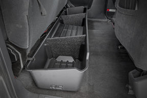 Clean up the contents of your cab with Rough CountryΓÇÖs Custom-Fit Under Seat Storage Compartment. These handy underseat truck storage compartments offer an easy way to store your gear with a custom, contoured look that blends in seamlessly with your vehicleΓÇÖs factory design. Keep your tools, gear, and other odds and ends organized and stowed away while conveniently stowed away under the rear seats.\