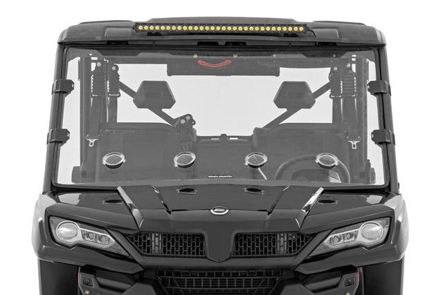 Added Protection and Customizable Comfort: Shield the occupants of your CFMOTO UFORCE from off-road hazards like rocks, branches, and debris with Rough Country's Scratch-Resistant Windshield. This innovative design combines protection with unmatched comfort by featuring 4 adjustable vents that allow you to control airflow to suit your needs. Vents can be closed, opened, or half-opened for ultimate versatility. Whether you're navigating dusty trails or keeping cool on hot days, the 360┬░ rotating vents provide superior flexibility, making every ride more enjoyable. High-Quality Polycarbonate Construction: Crafted from thick .25 polycarbonate material, Rough Country windshields deliver the ultimate combination of clarity, flexibility, and durability. Precision cut for a flawless fit, this material outperforms glass and acrylic in toughness, ensuring your windshield can handle even the roughest terrains. Enhanced Durability with Scratch and UV Resistance: Each windshield is coated with a secondary AR2 hard-coating process, creating a robust scratch-resistant barrier that extends its lifespan. This treatment also provides UV protection, ensuring your windshield remains clear and functional for years to come. Contoured Design with a Precision Fit: The contoured design and premium rubber seal ensure a secure, rattle-free fit that keeps out dust, debris, and water, while seamlessly complementing the rugged aesthetics of your CFMOTO UFORCE. Seamless Roof Compatibility: Engineered to integrate effortlessly with both factory and most aftermarket roofs, this windshield adds versatility without compromising style or functionality. Quick and Easy Installation: With a simple strap-on installation process, you can have your Rough Country windshield ready to go in as little as 15ΓÇô30 minutes. Spend less time prepping and more time conquering the trails. Limited-Lifetime Replacement Warranty: Rough Country stands behind its products with a limited lifetime replacement warranty against manufacturer defects. Ride with confidence knowing your windshield is protected from structural or workmanship damage.