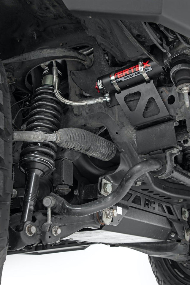 Unrivaled Performance: Unmatched Ride Quality. Experience the pinnacle of off-road control with Rough Country's 2.5 Vertex Reservoir Coilovers - precision-engineered to dominate any terrain while delivering a smooth, customizable ride.Built for the Extreme: Featuring a monotube design with an external remote reservoir, these nitrogen-charged coilovers increase oil capacity and damping sensitivity for superior heat dissipation and fade resistance. A massive 2.5-inch piston and 18mm chrome-hardened piston rod ensure maximum durability and performance in the toughest conditions.Engineered for Durability: A 3-stage seal system prevents dirt, debris, and fluid leakage, while the honed steel body and heat-treated alloy bearing extend longevity. The zinc-plated finish with a double clear coat and unbeatable salt spray resistance (over 400 hours) provide exceptional corrosion protection.Premium Design: These coilovers don't just perform - they turn heads. Featuring CNC-machined billet aluminum accents, a laser-etched RC logo, and premium "Vertex" decals, they combine high-end aesthetics with rugged reliability. They also feature a durable braided steel reservoir line and a laser-etched bracket system, ensuring a sleek, professional finish.Backed by Confidence: Covered by Rough Country's 3-year manufacturer's warranty, these coilovers offer long-term reliability and peace of mind for every adventure.Upgrade your ride today with Rough Country's 2.5 Vertex Coilovers - because performance, durability, and style should never be compromised.