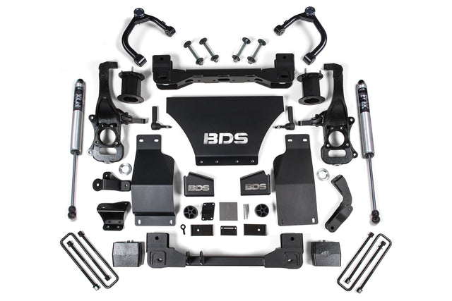 BDS steps up the performance and capability of the Chevy Silverado and GMC Sierra 1500 trucks with 6-inch suspension lift kit. Designed to improve stance, performance, and capability, this kit includes everything necessary to set your truck up right with clearance for up to 35" tires