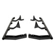 Side rail and combination steps to protect the front quarter panels and lower sills. The integrated step offers improved vehicle access. While they offer an excellent barrier against rock ledges, they are not considered a true rock slider that might be required for aggressive rock crawling.