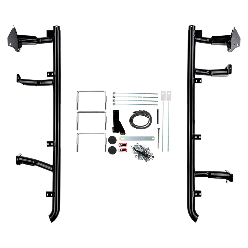 Side rail and combination steps to protect the front quarter panels and lower sills. The integrated step offers improved vehicle access. While they offer an excellent barrier against rock ledges, they are not considered a true rock slider that might be required for aggressive rock crawling.