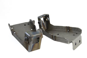 PMF Front race coilover towers replace the heavy OEM coil buckets with a lightweight coilover tower. This is intended to pair with a QA1/Viking etc coilover. These come with lower mounts. These are setup for a 1/2" x 1.5" mounting width both top and bottom. Removal of the factory bucket is required.