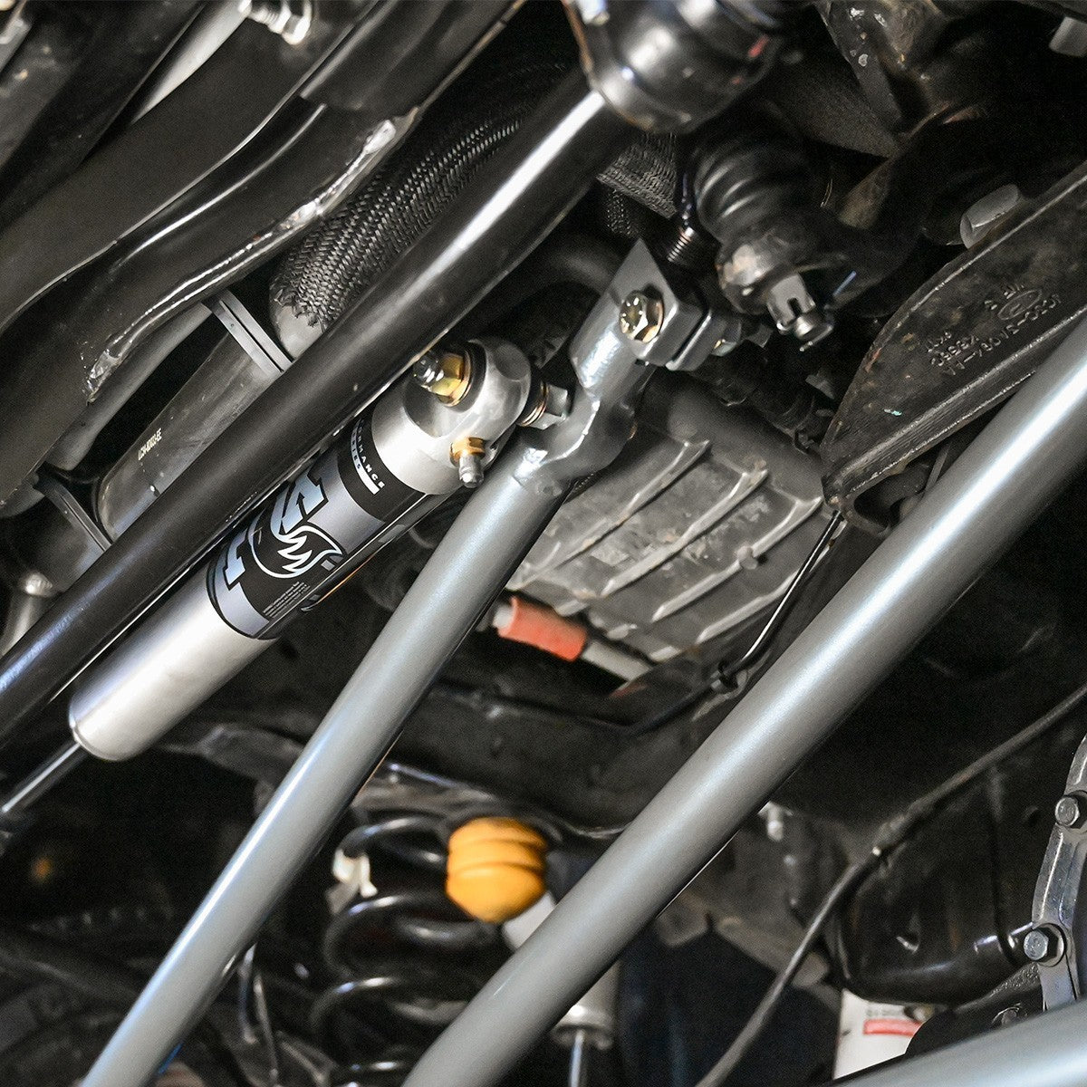 - Allows you to mount an aftermarket steering stabilizer in the top mount position on your Ford Super Duty