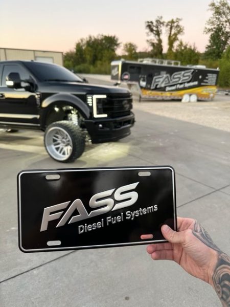 Black and chrome, clean and simple. The newest FASS License Plate is perfect for a custom, low key look.