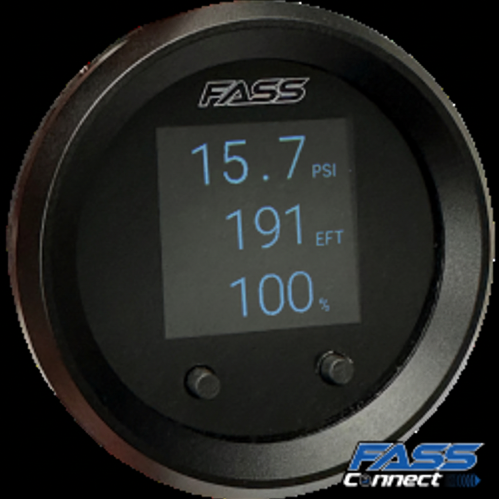 If you purchased the FASS Connect Lite (version without the gauge), the FASS Connect Gauge can be added as an accessory at a later time. The FASS Connect Gauge communicates wirelessly with the FASS Connect ECU and can display up to 5 live parameters at a time.