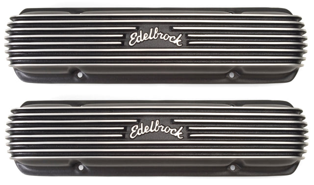 The Edelbrock #41303 Classic Series Valve Covers are designed for Pontiac 301?455 V8 1962-79 applications. Edelbrock first made these aluminum valve covers in the late '50s and they're still a classic. Made of heavy-gauge sand-cast aluminum, Overall height is measured from base to top at the highest point. Edelbrock classic valve covers can be machined to accept breathers if desired.