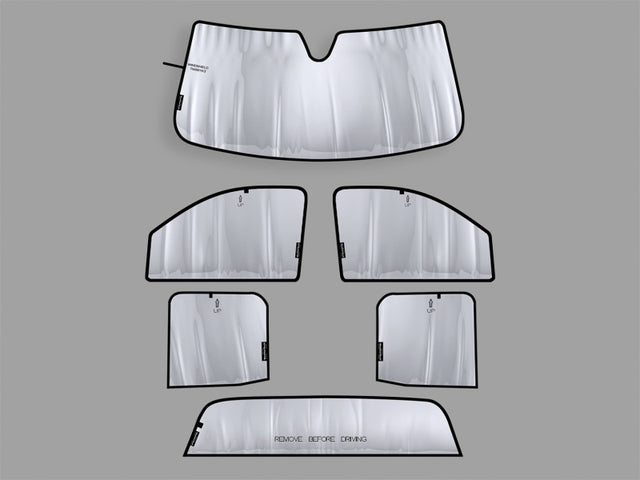 WeatherTech® TechShade® Full Vehicle Kits help keep your entire vehicle's interior temperatures down while protecting it from the sun's damaging effects. TechShade® Full Vehicle Kits include 4 or 6 pieces depending on the vehicle model. TechShade® kits are custom-fit, and when properly installed, will remain snug in each window opening on the vehicle. Each TechShade® features a foam core, which makes for easy handling and a sturdy fit. After use, simply pull on the your shade's pull tabs and roll all pieces together using the easy roll up and store Hook & Loop strap. Full Vehicle Kits only available in select vehicles