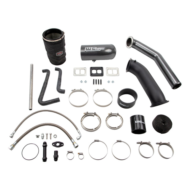 This kit from WCFab will allow you to install an S400 based Turbo on your 2004.5-2007 5.9 Cummins with a 2nd Gen Style Exhaust Manifold (Sold Separate). If you are not purchasing the turbo and manifold from us you must specify the brand of turbo and manifold you are using at the time of placing your order, some brands may require that you send the parts in to WCFab for the kit to be built. Each turbo kit is hand built in house by our experienced fabricators and welders. Every part is built and test fit on an engine to ensure proper fitment. All tubing is TIG welded and mating flanges are CNC machined with O-ring seals where necessary for a boost-leak free setup. Kit includes all components needed to install the turbo, mounting the manifold pointing up which allows for a quick and simple down pipe install- no cutting of your exhaust system required! WCFab's down pipe connects to the v-band flange on the exhaust pipe just as your factory turbo/cast elbow did.