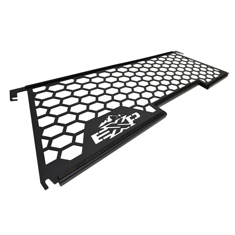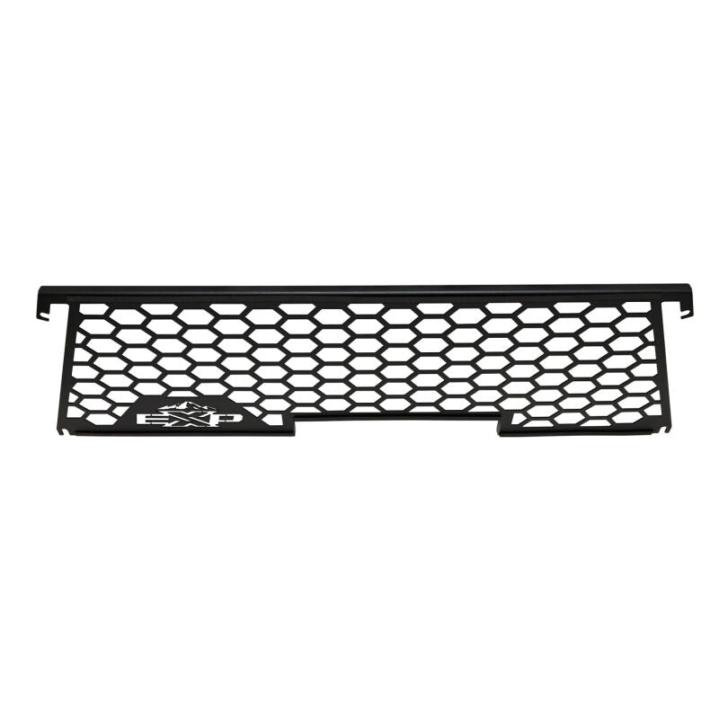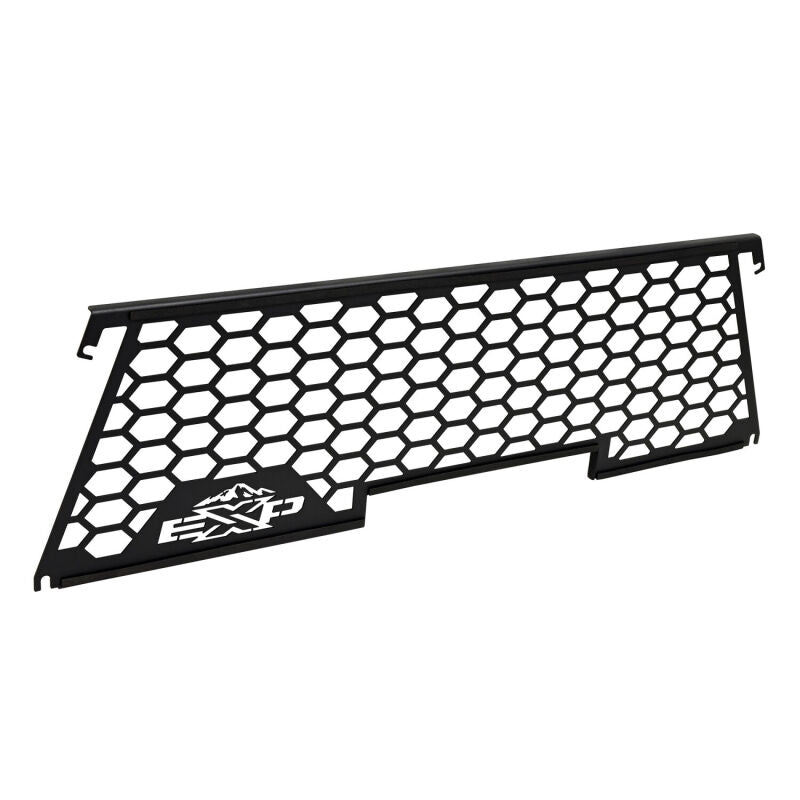 EXP Truck Cap Rear Window Protector has a mesh design and is made of powder coated aluminum which provides long lasting corrosion protection. The window protector bolts-in which allows for easy DIY installation over the rear window glass pritecting from damage. It also offers additional security and protection.