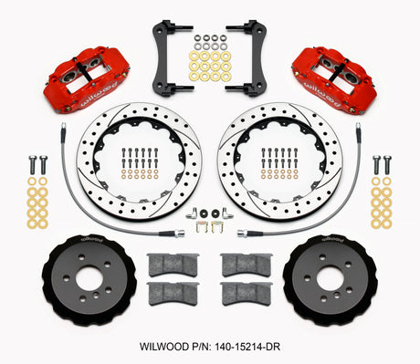 Wilwood Dynapro Radial / MC4 Rear Kit 12.88 Drilled & Slotted Red 2015 Ford Mustang w/Lines