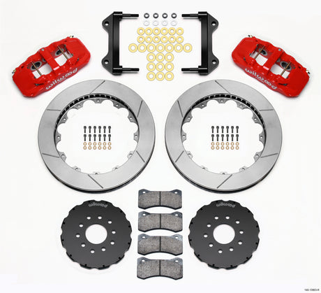 Wilwood AERO4 / MC4 Rear Kit 14.00 Red 2015-Up Mustang w/Lines & Cables