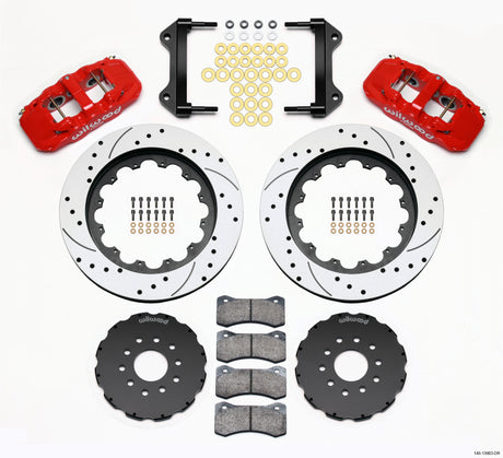 Wilwood AERO4 / MC4 Rear Kit 14.00 Drilled Red 2015-Up Mustang w/Lines & Cables
