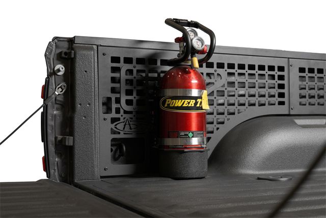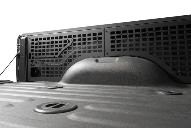 "Our molle panels utilize your truck bed’s vertical storage space to mount gear with molle attachment systems. The panels are available for the driver and passenger side, so you can run one or both sets. They closely follow the OEM lines of your truck bed, and they are straightforward to install. The driver side set features a removable molle panel for retaining access to the truck’s accessory power ports when needed. The panels install to multiple mounting points, and they retain the OEM tie down points while providing additional tie down capabilities. The panels are made from steel, and they are finished in a dual-stage hammer black powder coat. Made in the USA.