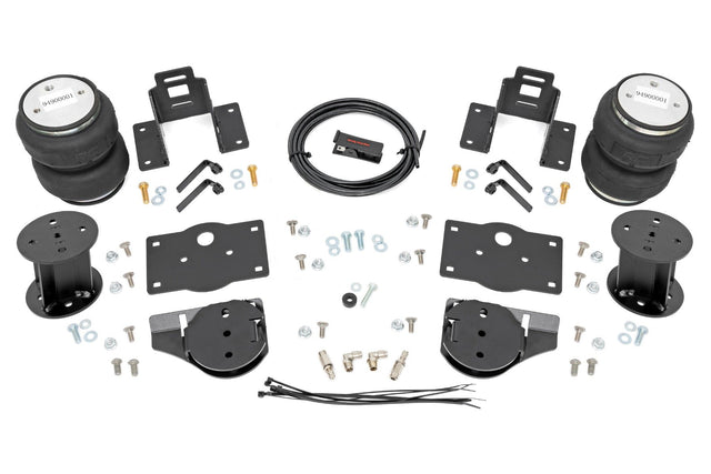 Ideal Leveling. Is your truck your workhorse? The main attraction to the pick-up line is the accessibility to haul and tow as desired. However, due to the amount of weight in the bed, or the condition of the vehicle's rear leaf springs, this can cause the vehicle to be un-level when under load. Here at Rough Country, we created an innovative new product to ensure that these are troubles of the past. Introducing, Rough Country's Rear Air Spring Kit.Heavy-duty Construction. Rough Country's Rear Air Spring Kit features two RC branded high-quality double convoluted airbags complemented with DOT-approved airlines. Whether you plan on towing or hauling in the not-so-distant future Rough Country's Air Spring kit is the must-have accessory to ensure that your trailer is level reducing the weight off of the tongue of your trailer.  Each kit offers 1/4" push connector fittings and all of the bracketry needed to ensure installation is lightning fast and secure! Rough Country's Air Spring kit provides up to 5,000 lbs of load support to ensure that you experience less sway and bottoming out when braking and steering! \