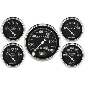 Auto Meter Gauge Kit 5 pc. 3 1/8in & 2 1/16in Mechanical Speedometer Old Tyme Black