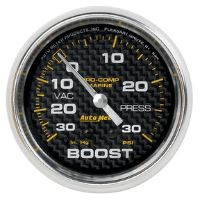Autometer Marine Carbon Fiber Gauge 2-5/8in Mechanical Vacuum/Boost Gauge 30INHG-30PSI