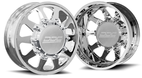 DDC Wheels are designed to bring superior form, fit and function to your dually pickup. Our 8 lug dually wheels incorporate an attractive 10 lug design that comes standard with our bullet style lug covers, or these can be upgraded to spike lug covers.
