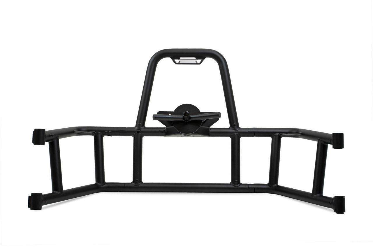 Our Tire Carrier features a body mounted design that transfers the weight of oversized tires/wheels from the factory door hinges to the body of your Wrangler. The mounting location of our carrier positions the tire higher than the factory placement which helps to improve the departure angle with larger tires when rock crawling. The tire carrier is made from high-quality steel tubing that is built to withstand rough trail conditions while providing an aggressive design that accents your rig’s factory styling.