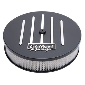 Edelbrock Air Cleaner Racing Series Round Aluminum Top Cloth Element 14In Dia X 3 125In Dropped Base