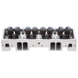 Edelbrock part #61259 Victor Jr. 23deg 220 cylinder head is designed for small-block Chevy Its 64cc combustion chamber yields around 10:1 compression ratio in a typical flat-top application and about 12.5:1 when used with some of the most common 12cc dome pistons. One of the key features of the Victor Jr. 23deg 220 cylinder head is the CNC machined chambers and bowls, which result in consistency and improved performance. They also feature angled spark plug holes and maintain the stock 23deg valve angle as well as the intake flange bolt pattern for use with 1986 and earlier intake manifolds. All of this allows this cylinder head to deliver 530-580 hp potential right-out-of-the-box, making them ideal for a budget minded engine build desiring a high quality cylinder head that still uses a stud and guide plate rocker system. Cylinder Head Specifications: - Exhaust port location: Raised .300" - Spark plug fitment: 14mm x .750 reach, gasket seat