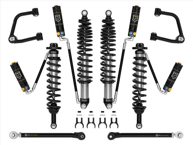 To accommodate the increased travel and lift height afforded by the ICON Coilovers, this Stage 6 kit comes with Tubular Upper Control Arms which provide caster correction and feature our patented Delta Joint PRO, which allows for up to 90-degrees freedom of movement. ICON tubular rear lower links employ dual-durometer greaseless bushings at one end, and massive FK rod ends at the other to provide the best combination of free articulation and ride quality.