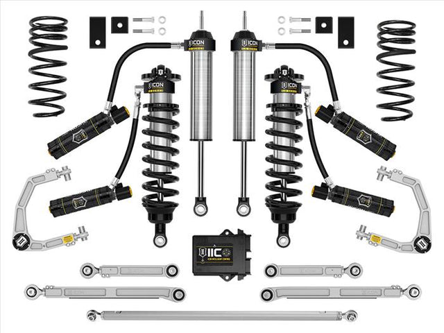 The ICON Vehicle Dynamics Stage 4 3.0 complete suspension system for the 2023-2024 Toyota Sequoia builds upon the Stage 12 2.5 suspension system with the upgrade to 3.0 Series CDEV front coilovers. This system offers improved on- and off-road performance, with active electronic shock damping adjustment, as well as improved alignment specs, improved rear articulation, and increased front-end lift height range for a proper stance and fitment of up to 35" tires.