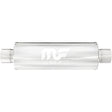 The MagnaFlow 4in. Round Straight-Through Performance Exhaust Muffler 10419 brings our world-famous exhaust sound and dyno-proven performance to your ride in a weight-optimized 4x9x14in. package with a premium satin finish. The straight-through free-flowing design of this round-bodied muffler's reversible, universal 3/3in. diameter inlet/outlet layout enables versatile installation options to match the spacing requirements of your vehicle. Due to the cutting and welding involved, professional installation is highly recommended. Internally, 10419 utilizes a perforated stainless steel core wrapped in stainless steel mesh and acoustic fiber fill to achieve a powerful, resonant tone. This muffler is made of durable, corrosion resistant stainless steel and produced using cutting-edge CNC precision robotic manufacturing techniques, all backed by MagnaFlow's limited lifetime construction warranty.