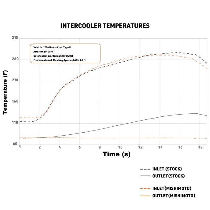 Upgrade your 2023+ Honda Civic Type R with a Performance Intercooler Kit engineered to maximize power and keep intake air temperatures in check under the most demanding conditions. Built with cast aluminum end tanks and high-flow aluminum piping, this kit delivers gains of up to 10 horsepower and 9 lb-ft of torque while maintaining consistent performance during repeated heat-soak sessions. With support for builds up to 600 HP, increased pipe diameters, and a 140% larger core volume compared to stock, this intercooler keeps your engine cool and efficient even on the longest track days.