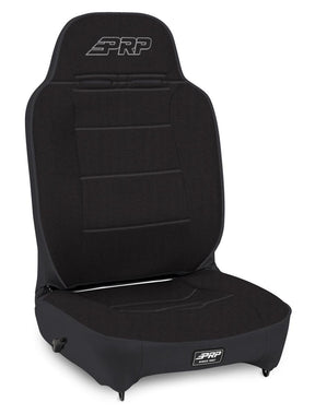 The Enduros reclining mechanism can fold the seat forward to allow access to your back seats or recline all the way back for enjoying the stars. With a flat bottom cushion, the Enduro allows for maximum rider compatibility and also makes it easy to climb in and out of your rig. The seat features Tweed Center, Vinyl Back and Vinyl Piping. All Black - 201, 201, 50, 50; PRP Silver Out
