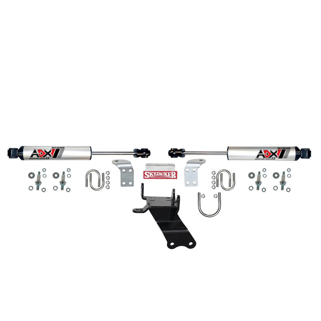 Skyjacker(R) Dual Steering Stabilizer is dampening shocks for your steering system. They dampen out the harshness of the highway and places control back into the driver's hands. Controlling the terrain helps reduce the physical fatigue of fighting the road. Improves steering response time and allows you to enjoy the drive. CNC machined 6061-T6 polished aluminum hard anodized cylinder body ADX 2.0 stabilizers with 30mm bore & 14mm piston rod provides specific valving needed with equal compression and extension damping performance. The dampening control also adds life to tires, tie rod, ball joints and other steering components. CNC machined 6061-T6 polished aluminum hard anodized body and caps for superior rust resistance. CNC machined 6061-T6 polished aluminum hard anodized body dissipates heat up to 30% faster than traditional steel body steering stabilizers. Internal high performance fade resistant gas cell yields longer life, improves handling, & performance.