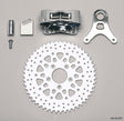 Wilwood's Sprocket Brake kits 140-10178 / 140-10178-P are for a 48 tooth sprocket and R/H caliper application. The sprocket-rotor bolt circle is consistent on all Harley Davidson models with a 5 x 3.25" bolt circle. The accompanying billet aluminum GP310 caliper is a 4 piston powerhouse, available in either chrome or a bright polished finish. Sprocket brake kits utilize a unique bracket design that combines the right elements of strength and style for your custom application.